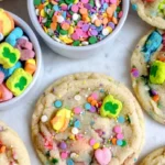 Delightful sugar cookies infused with the cheerful crunch of Lucky Charms cereal and mini marshmallows, creating a playful and nostalgic treat.