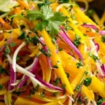 A vibrant and refreshing Mango Slaw that combines the sweetness of ripe mangoes with crispy cabbage and tangy lime dressing, perfect for summer gatherings.
